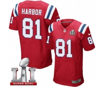 Men's Nike New England Patriots #81 Clay Harbor Elite Red Alternate Super Bowl LI 51 NFL Jersey