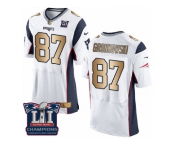 Men's Nike New England Patriots #87 Rob Gronkowski Elite White Gold Super Bowl LI Champions NFL Jersey