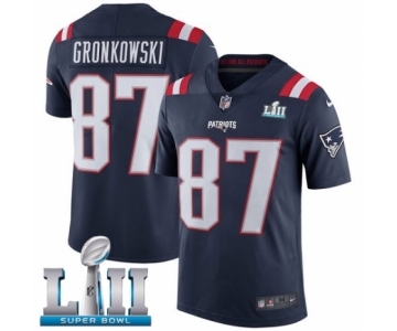 Men's Nike New England Patriots #87 Rob Gronkowski Limited Navy Blue Rush Vapor Untouchable Super Bowl LII NFL Jersey