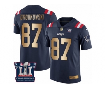 Men's Nike New England Patriots #87 Rob Gronkowski Limited Navy Gold Rush Super Bowl LI Champions NFL Jersey