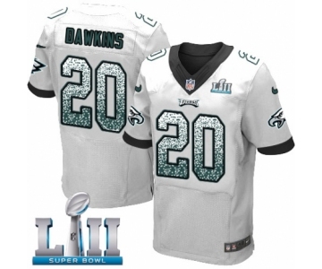 Men's Nike Philadelphia Eagles #20 Brian Dawkins Elite White Road Drift Fashion Super Bowl LII NFL Jersey
