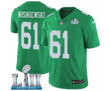 Men's Nike Philadelphia Eagles #61 Stefen Wisniewski Limited Green Rush Vapor Untouchable Super Bowl LII NFL Jersey