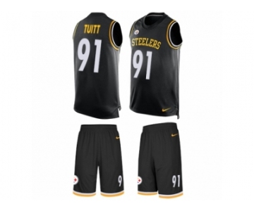 Men's Nike Pittsburgh Steelers #91 Stephon Tuitt Limited Black Tank Top Suit NFL Jersey
