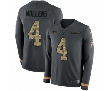 Men's Nike San Francisco 49ers #4 Nick Mullens Limited Black Salute to Service Therma Long Sleeve NFL Jerse
