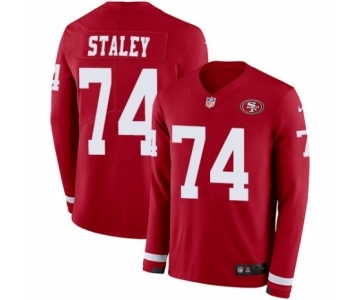 Men's Nike San Francisco 49ers #74 Joe Staley Limited Red Therma Long Sleeve NFL Jersey