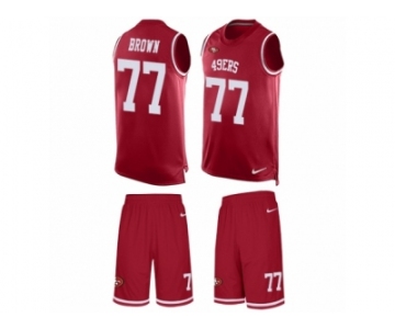 Men's Nike San Francisco 49ers #77 Trent Brown Limited Red Tank Top Suit NFL Jersey