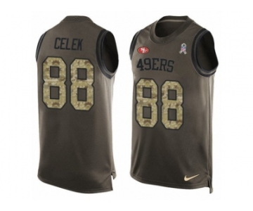 Your Position: Home>NIKE NFL Jerseys>Nike San Francisco 49ers>Limited Jerseys>Men's Nike San Francisco 49ers #88 Garrett Celek Limited Green Salute to Service Tank Top NFL Jersey