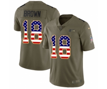 Men's Nike Seattle Seahawks #18 Jaron Brown Limited Olive USA Flag 2017 Salute to Service NFL Jersey