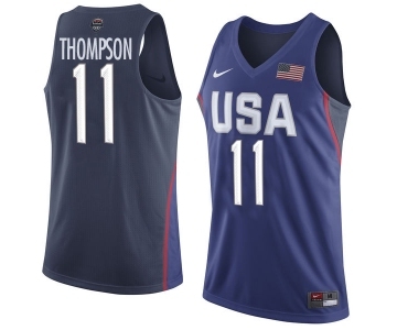Men's Nike Team USA #11 Klay Thompson Authentic Navy Blue 2016 Olympic Basketball Jersey