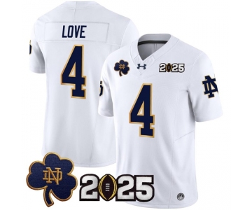 Men's Notre Dame Fighting Irish #4 Jeremiyah Love White F.U.S.E. 2025 CFP Final Patch Jersey