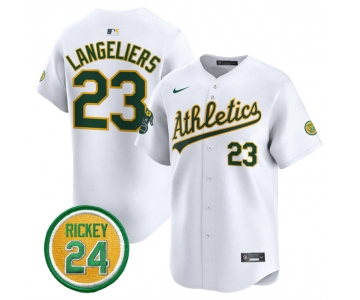 Men's Oakland Athletics #23 Shea Langeliers White 2024 Home Limited With Rickey Henderson Patch Stitched Jersey
