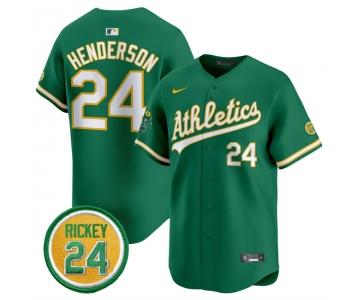 Men's Oakland Athletics #24 Rickey Henderson Green 2024 Limited With Rickey Henderson Patch Stitched Jersey
