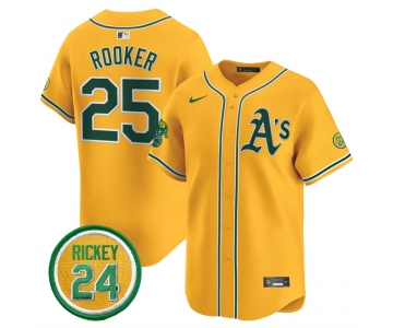 Men's Oakland Athletics #25 Brent Rooker Yellow 2024 Limited With Rickey Henderson Patch Stitched Jersey
