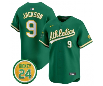 Men's Oakland Athletics #9 Reggie Jackson Green 2024 Limited With Rickey Henderson Patch Stitched Jersey