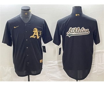 Men's Oakland Athletics Black Gold Team Big Logo Cool Base Stitched Baseball Jerseys