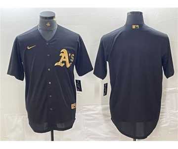 Men's Oakland Athletics Blank Black Gold Cool Base Stitched Baseball Jersey