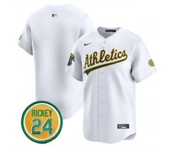 Men's Oakland Athletics Blank White 2024 Home Limited With Rickey Henderson Patch Stitched Jersey