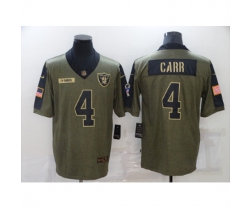 Men's Oakland Raiders #4 Derek Carr Nike Olive 2021 Salute To Service Limited Player Jersey