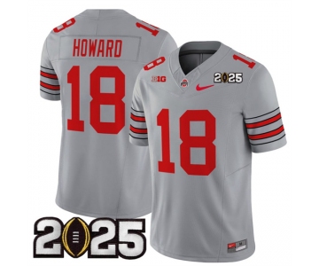 Men's Ohio State Buckeyes #18 Will Howard Grey 2025 CFP Final Patch F.U.S.E. Vapor Limited Stitched Football Jersey