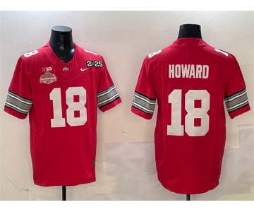 Men's Ohio State Buckeyes #18 Will Howard Red 2025 CFP Final With National Champions Patch F.U.S.E. Vapor Limited Stitched Football Jersey