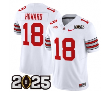 Men's Ohio State Buckeyes #18 Will Howard White 2025 CFP Final Patch F.U.S.E. Vapor Limited Stitched Football Jersey