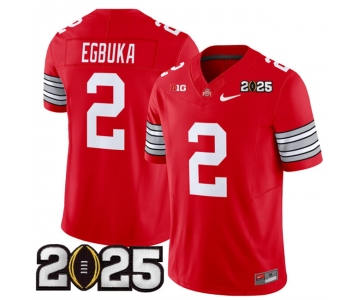Men's Ohio State Buckeyes #2 Emeka Egbuka Red 2025 CFP Final Patch F.U.S.E. Vapor Limited Stitched Football Jersey