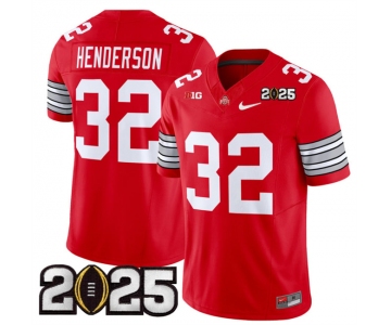 Men's Ohio State Buckeyes #32 TreVeyon Henderson Red 2025 CFP Final Patch F.U.S.E. Vapor Limited Stitched Football Jersey