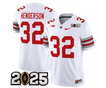 Men's Ohio State Buckeyes #32 TreVeyon Henderson White 2025 CFP Final Patch F.U.S.E. Vapor Limited Stitched Football Jersey