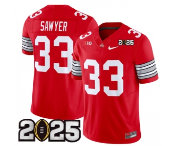 Men's Ohio State Buckeyes #33 Jack Sawyer Red 2025 CFP Final Patch F.U.S.E. Vapor Limited Stitched Football Jersey
