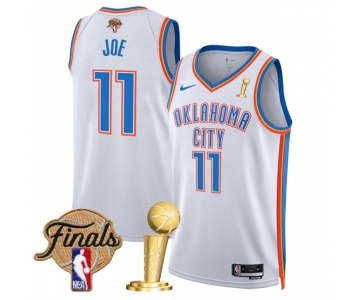 Men's Oklahoma City Thunder #11 Isaiah Joe White 2025 Finals Patch And Finals Champions Patch Association Edition Stitched Basketball Jersey