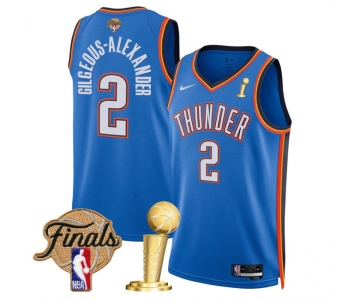 Men's Oklahoma City Thunder #2 Shai Gilgeous-Alexander Blue 2025 Finals Patch And Finals Champions Patch Icon Edition Stitched Basketball Jersey
