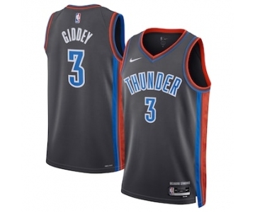 Men's Oklahoma City Thunder #3 Josh Giddey Gray Icon Edition Stitched Basketball Jersey