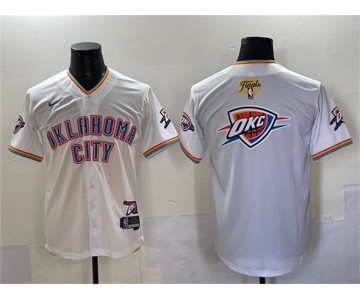 Men's Oklahoma City Thunder Team Big Logo White 2025 Finals Vapor Stitched Baseball Jersey