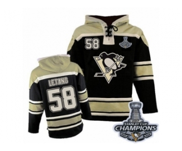 Men's Old Time Hockey Pittsburgh Penguins #58 Kris Letang Authentic Black Sawyer Hooded Sweatshirt 2017 Stanley Cup Champions