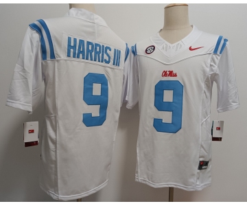 Men's Ole Miss Rebels #9 Tre Harris III White FUSE College Stitched Jersey