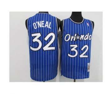 Men's Orlando Magic #32 Shaquille O'Neal Blue Mitchell & Ness Black Retired Player Jersey