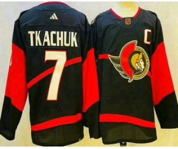 Men's Ottawa Senators #7 Brady Tkachuk Black 2022 Reverse Retro Authentic Jersey