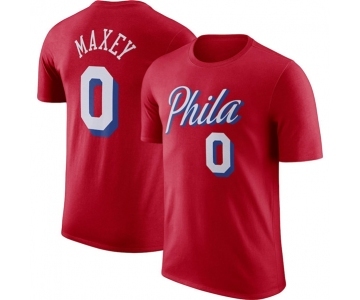 Men's Philadelphia 76ers #0 Tyrese Maxey Red 2022-23 Statement Edition Name & Number T-Shirt