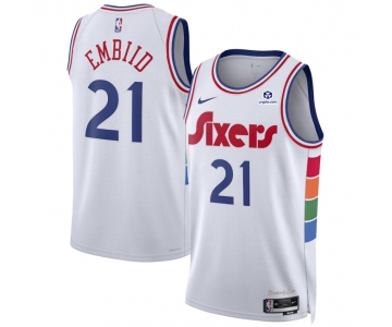 Men's Philadelphia 76ers #21 Joel Embiid White 2024 25 City Edition Stitched Jersey