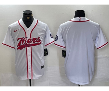 Men's Philadelphia 76ers Blank White With Patch Cool Base Stitched Baseball Jersey