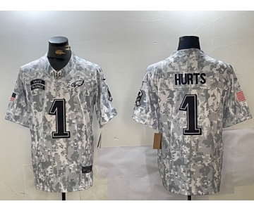 Men's Philadelphia Eagles #1 Jalen Hurts 2024 Arctic Camo Salute To Service Limited Stitched Football Jersey