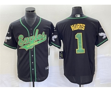 Men's Philadelphia Eagles #1 Jalen Hurts Black Cool Base Stitched Baseball Jersey