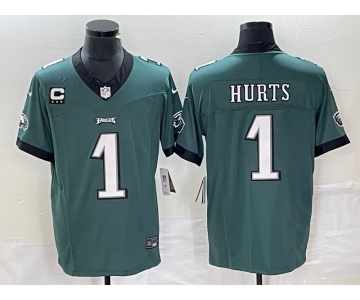 Men's Philadelphia Eagles #1 Jalen Hurts Green C Patch 2023 FUSE Vapor Untouchable Stitched Jersey