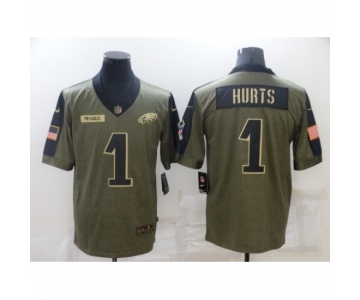 Men's Philadelphia Eagles #1 Jalen Hurts Nike Olive 2021 Salute To Service Limited Player Jersey