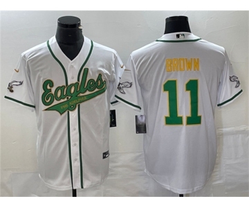 Men's Philadelphia Eagles #11 A. J. Brown White Gold Cool Base Baseball Stitched Jersey