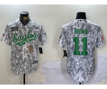 Men's Philadelphia Eagles #11 AJ Brown Arctic Camo 2024 Salute to Service Stitched Baseball Jerseys