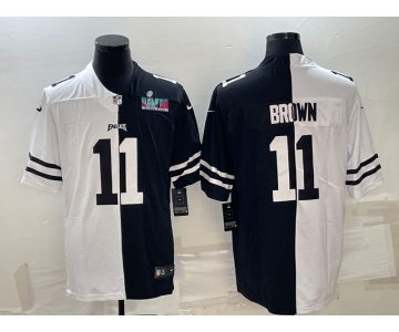 Men's Philadelphia Eagles #11 A.J. Brown Black & White Split Super Bowl LVII Patch Limited Stitched Jersey