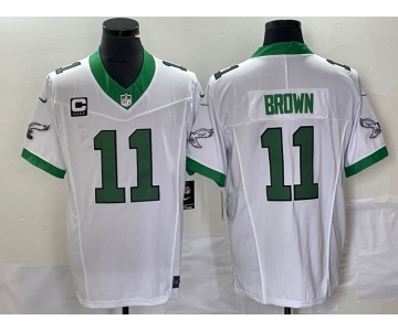 Men's Philadelphia Eagles #11 AJ Brown White 2023 F.U.S.E. Vapor Untouchable With C Patch Stitched Football Jersey