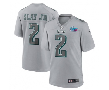 Men's Philadelphia Eagles #2 Darius Slay Jr. Gray Super Bowl LVII Patch Atmosphere Fashion Stitched Game Jersey