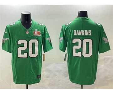 Men's Philadelphia Eagles #20 Brian Dawkins Green 2025 Super Bowl LIX Patch F.U.S.E. Throwback Vapor Untouchable Limited Stitched Football Jersey